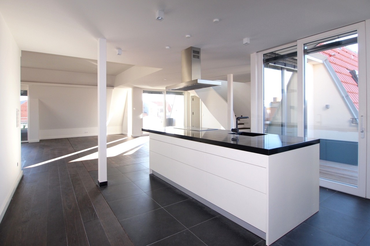 Das Dachgeschoss eines Jugenstilgebäudes in Berlin-Charlottenburg wurde in Eigentumswohnungen auf 2 Ebenen umgewandelt und dabei weitreichend erneuert und mit großen Dachterrassen versehen. Der komplette Innenausbau mit neuen Terrassen, Fenstern, Innenwänden, Bädern sowie einer Verbindungstreppe zur oberen Ebene wurden geplant und bis zur Fertigstellung im Auftrage der Wohnungseigentümer begleitet.